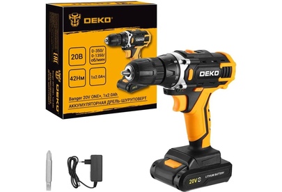 Аккумуляторная дрель-шуруповерт DEKO Banger 20V ONE+, 1x2. 0Ah предназначена для строительных, слесарно-монтажных работ. Инструмент помогает быстро высверливать отверстия нужного диаметра как на деревянной, так и металлической поверхности, быстро вкручивать или извлекать крепеж.