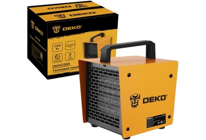 Тепловая пушка электрическая DEKO DKIH2300, 2300Вт используется в жилых или нежилых помещениях площадью до 25 кв.м. Устройство имеет компактный размер и прочный корпус квадратного сечения. Тепловая пушка электрическая DKIH2300W имеет функцию нагрева и вентилирования помещения. Данная модель оснащена керамическим нагревательным элементом и защитой от перегрева.Технические характеристики:Мощность: 2300 ВтНагревательный элемент: керамическийРасход воздуха: 140 м3/чСтепень защиты: IP20Класс электрозащиты: IПлощадь обогрева: 25 м2Регулятор температуры: механический ;Комплектация:Тепловая пушка - 1 штРуководство по эксплуатации - 1 шт