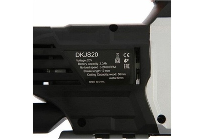 Напряжение 20 В. Емкость аккумулятора 2 Ач. Скорость холостого хода 0-2400 об/мин. Ход пилки 19 мм. Макс. глубина реза дерева 56 мм. Макс. глубина реза металла 6 мм.