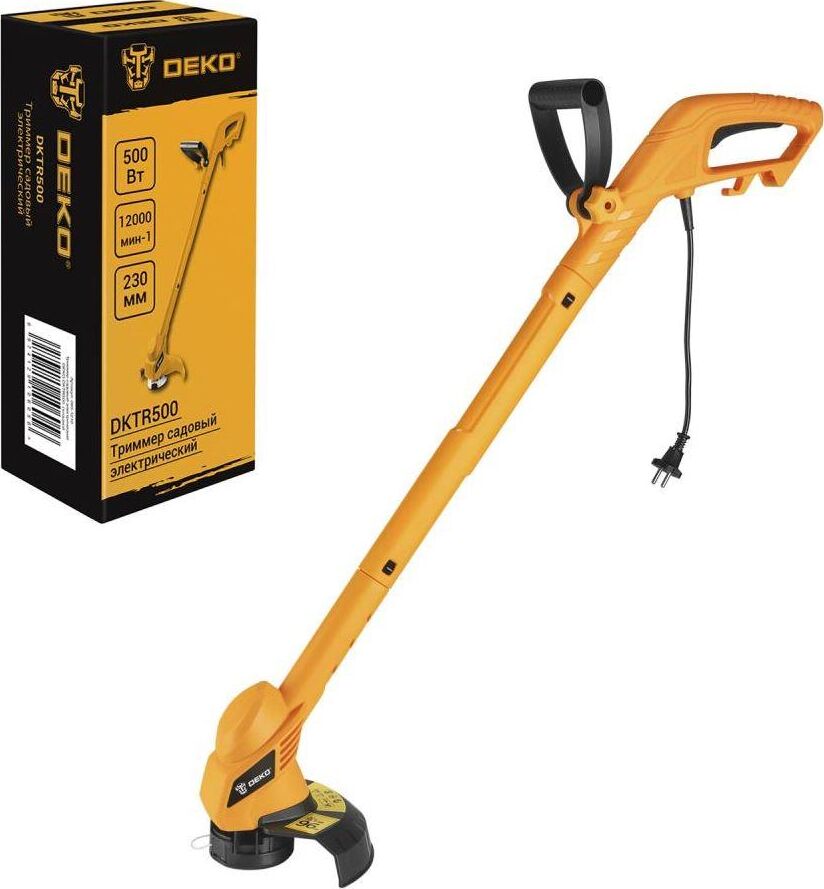 Напряжение/Частота: 220В/50Гц. Мощность: 500Вт. Частота вращения шпинделя: 12000 об/мин. Ширина скашивания: 230мм. Леска: 1,4мм*5м. Поставляется в частично разобранном виде: триммер (сложен) - 1шт, защитный кожух - 1шт, дополнительная рукоятка - 1шт, саморез - 1шт. В комплекте руководство по эксплуатации.