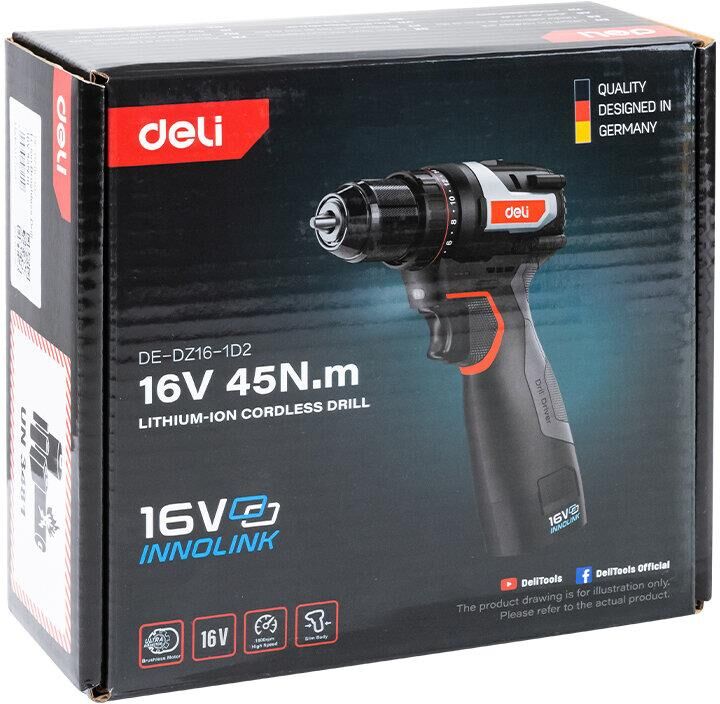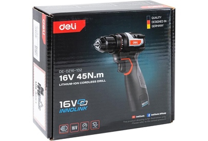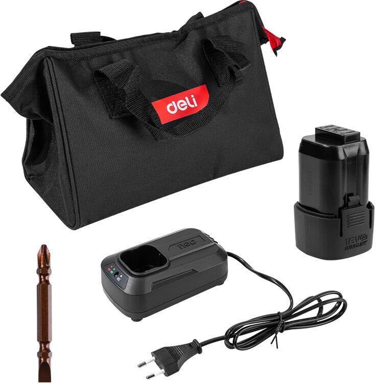DELI Дрель-шуруповерт аккумуляторная DE-DZ16-1D2 (2 АКБ*2Ач+ЗУ, 16В, 45Нм, сумка)