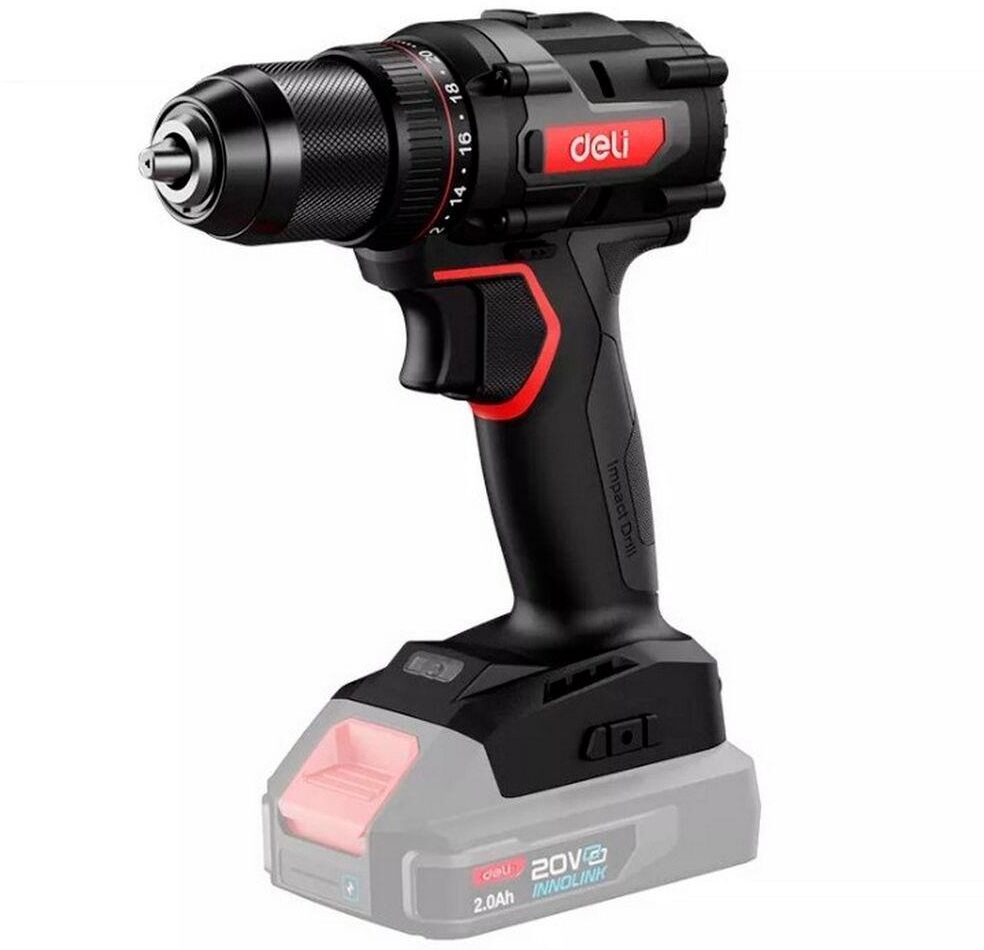 DELI Дрель-шуруповерт аккумуляторная DE-DZ20-2 (Без АКБ и ЗУ, 20В, 13мм, 70Нм, картон)