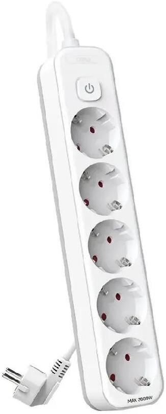 DELI Сетевой фильтр на евровилку ET439, 5м, белый