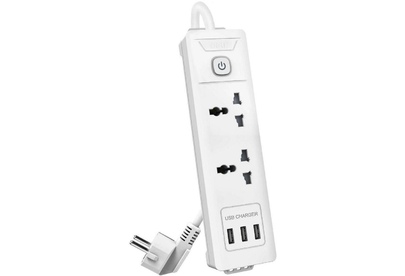 сетевой фильтр, 2 розетки, макс. нагрузка 2500 Вт, макс. ток 10 А, USB, заземление, выключатель на корпусе, длина кабеля: 2 м, белый