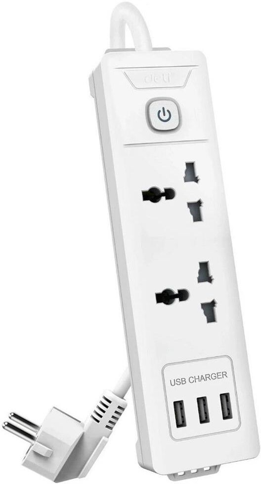 DELI универсальный ET407/ 3розетки + 3USB , 2 м
