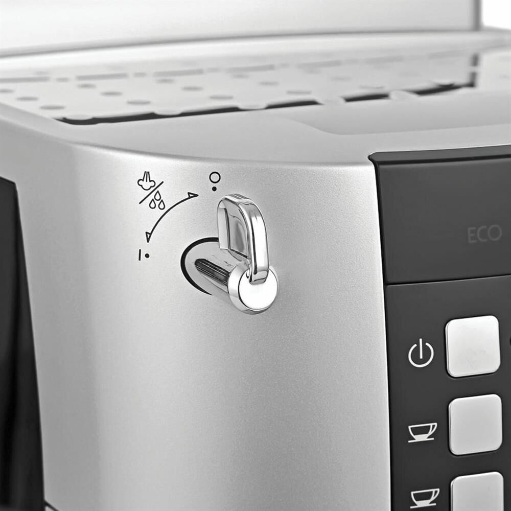 Мощность, Вт 1450 Страна производства Румыния Кофемолка жерновая, металлическая, коническая Дисплей Да Предустановленные напитки Эспрессо, Капучино Уникальные особенности Компактные размеры; Система TwinShot; Режим EСO; Автоматическая система удаления накипи; Легкое обслуживание Тип капучинатора ручной Гарантия, лет 3 Тип управления кнопочное Модель ECAM 21.117.SB Цвет Серебристый/Черный Габариты (ВхШхГ) 35.1х23.8х43 Вес нетто, кг 9 Возможность готовить две чашки эспрессо Да Управление с телефона Нет Автоотключение Да Подогрев чашек да Мощность, Вт 1450 Технические характеристики Давление, бар 15 Тип используемого кофе зерновой, молотый Количество степеней помола 13 Объем контейнера для зерен, г 250 Объем резервуара для воды 1.8 Материал корпуса пластик Длина кабеля, м 1.75 Индикатор включения Да Комплектация Кофеварка Поддон для чашек Поддон для капель Руководство по эксплуатации Гарантийный талон Регулировка порции воды Да