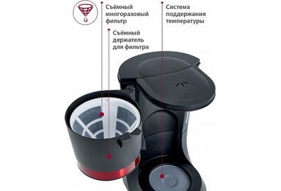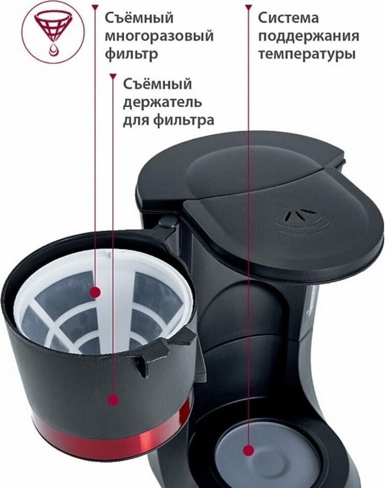 Мощность 680Вт. Вместимость 10 чашек. Корпус из высококач. пластика. Жаростойкий стекл. резервуар д/кофе. Шкала уровня воды. Свет. индикатор работы.Функция Антикапля. Система поддержания температуры. Защита от перегрева.