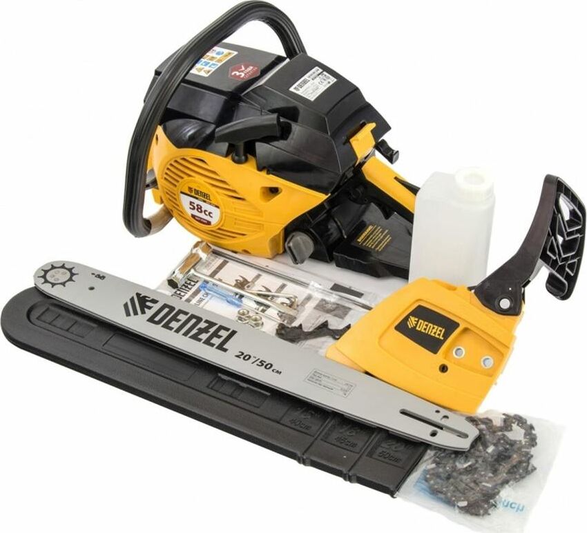 DENZEL 95235 Пила цепная бензиновая DGS-5820, шина 50 см, 58см3, 4,1 л.с.