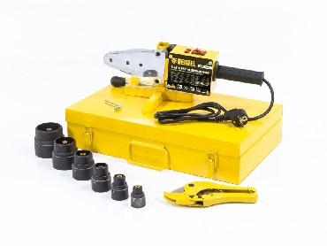 Аппарат для сварки (пайки) пластиковых труб торговой марки DENZEL предназначен для прочного соединения труб из полипропилена и полиэтилена в домашних условиях. Технологический процесс заключается в нагреве/размягчении двух монтажных компонентов и соединении их под давлением. Технические возможности аппарата DENZEL позволяют регулировать температуру нагрева изделий до 260 300 °С. Применение сменных насадок позволяет соединять трубы диаметром от 20 до 63 мм. Насадки имеют тефлоновое покрытие, предупреждающее налипание пластика к их поверхности. Питание аппарата осуществляется от сети переменного тока напряжением 220 В. Максимальная потребляемая мощность 1500 Вт. Набор упакован в прочный металлический кейс, удобный для транспортировки и хранения. В комплект поставки помимо аппарата входят: Подставка со струбциной, позволяющей закрепить ее на столе. Труборез. Шесть сменных насадок: 63, 50, 40, 32, 25, 20 мм. Шпильки крепления; ключ шестигранный.