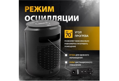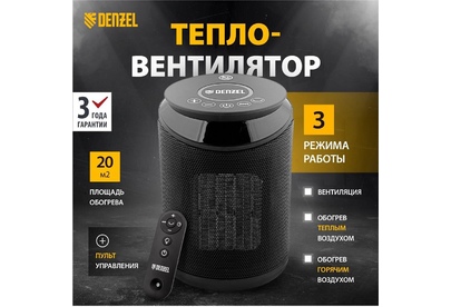 DENZEL DTFC-2000 Тепловентилятор электр. керамический пульт, 3 реж., вент., нагрев 1000/2000 Вт 9641