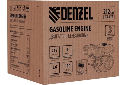 DENZEL Двигатель бензиновый RX17S, 7 л.с., 212 см3, горизонтальный вал шлиц 25 мм 95102