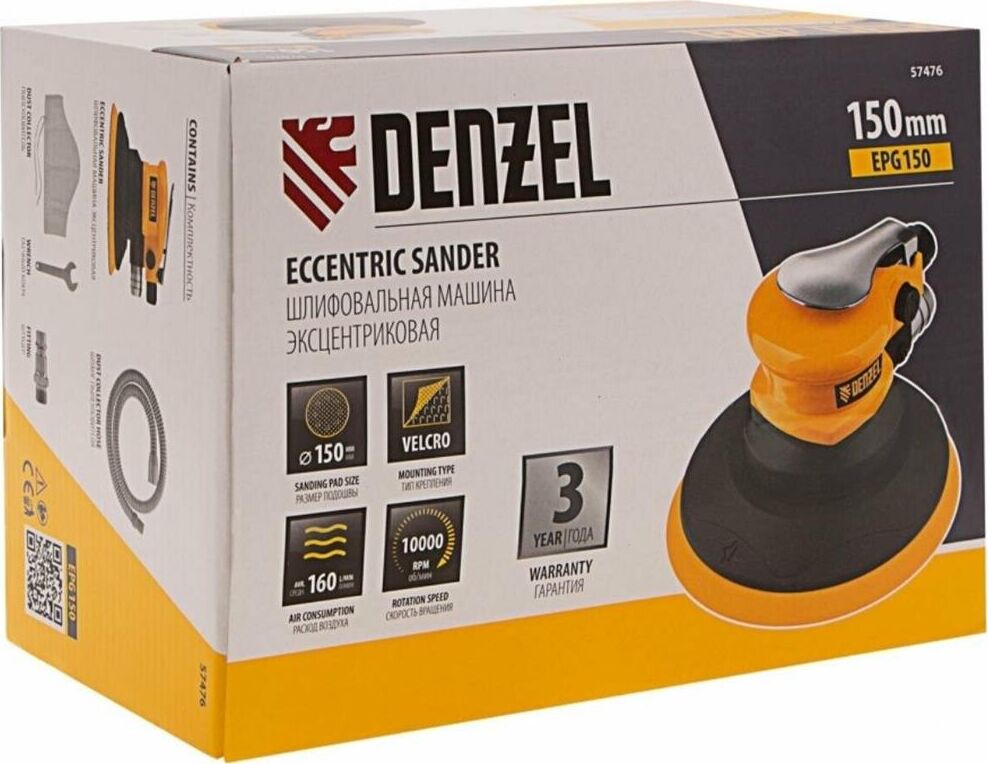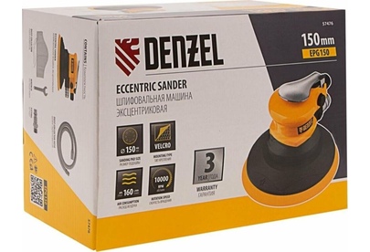 DENZEL Эксцентриковая шлифовальная машина EPG150, 150 мм, 10000 об/мин, 5 мм, 160 л/мин 57476
