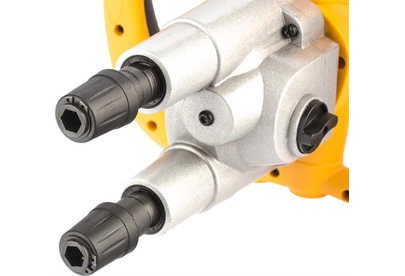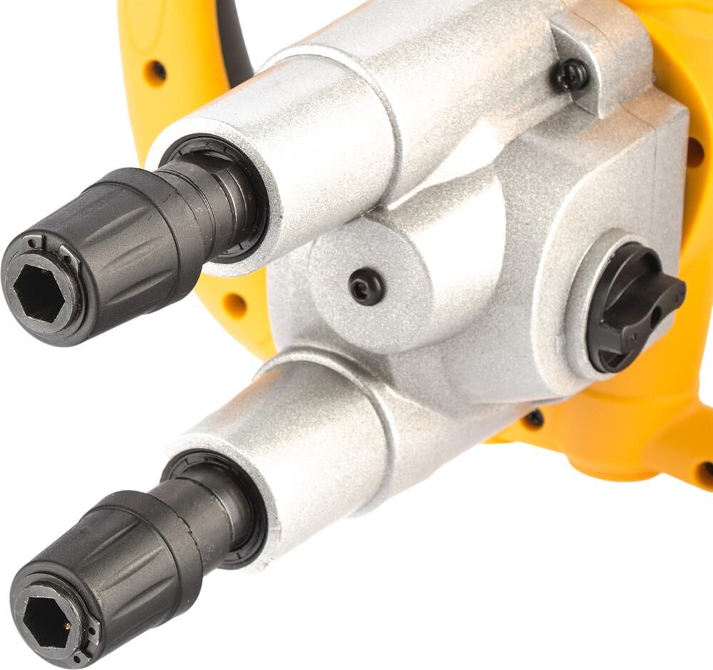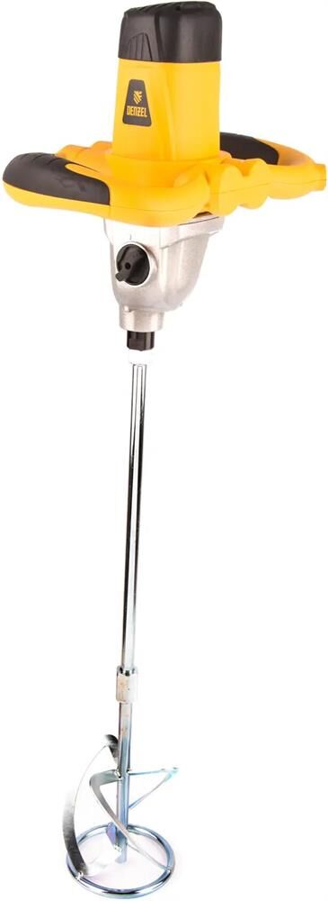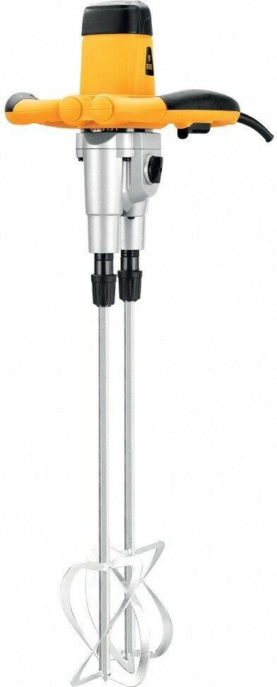 Высокоэффективный миксер Denzel с двумя насадками для качественного и быстрого приготовления различных растворов и смесей. Особенности: электронная регулировка частоты вращения насадки для выбора оптимального режима смешивния; быстросъемное крепление насадок, обеспечивающее удобство при хранении и обслуживании Преимущества: система поддержания оборотов под нагрузкой; обрезиненные эргономичные рукоятки для комфортного хвата Комплектация: Миксер строительный электрический - 1 шт.; Шнек в сборе - 2 шт.; Комплект запасных угольных щеток - 1 шт.; Инструкция по эксплуатации и гарантийный талон - 1 шт.