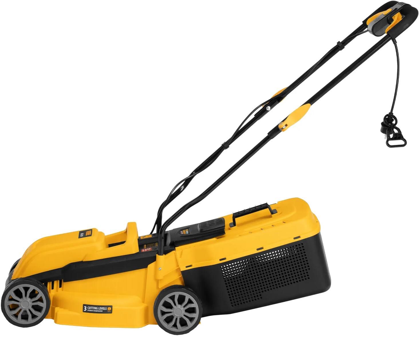 Основные характеристики Напряжение - 230 В Область применения - для садовых работ Регулировка высоты - осевая Тип газонокосилки - колесная (несамоходная) Тип двигателя - синхронный Тип травосборника - жесткий пластиковый Назначение - для газона Мощность, Вт - 1200 Защита и безопасность - контроль заполненности травосборника Количество положений высоты скашивания - 3 Конструкция и дизайн - травосборник Максимальная высота скашивания, мм - 6.5 Материал деки - ABS-пластик Минимальная высота скашивания, мм - 2.5 Объем травосборника, л - 30 Режущий элемент - нож Функциональные возможности - съемный травосборник Ширина скашивания, см - 32 Комплектация товара Газонокосилка с установленным ножом - 1 шт Травосборник - 1 шт Cтойка нижняя - 1 шт Стойка верхняя (с рукояткой) - 1 шт Фиксатор кабеля питания - 1 шт Фиксатор удлинителя - 1шт Набор крепежа - 1 шт Руководство по эксплуатации с гарантийным талоном - 1 шт Транспортировочные колеса - 4шт