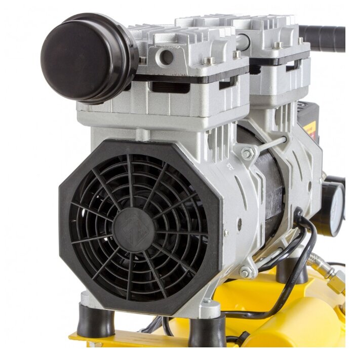 пониженный уровень шума, комплектность: компрессор воздушный, колеса с крепежом 2 шт., виброопора с крепежом, воздушный фильтр, руководство по эксплуатации, гарантийный талон