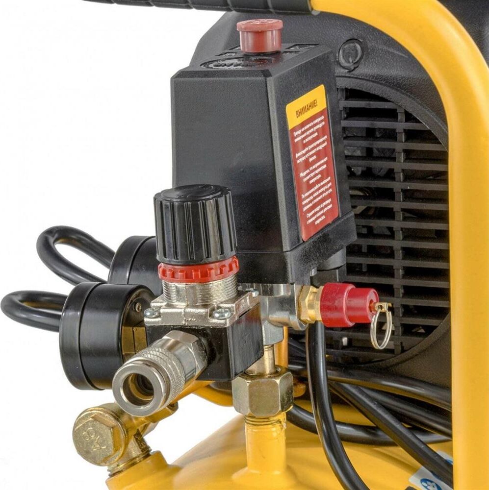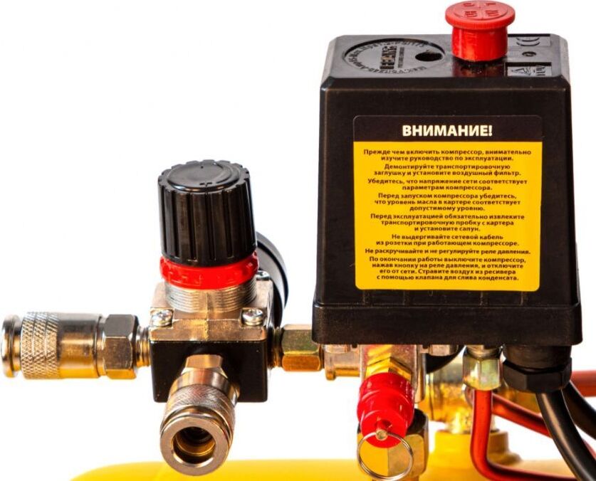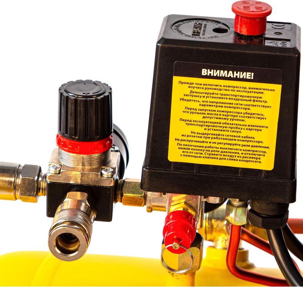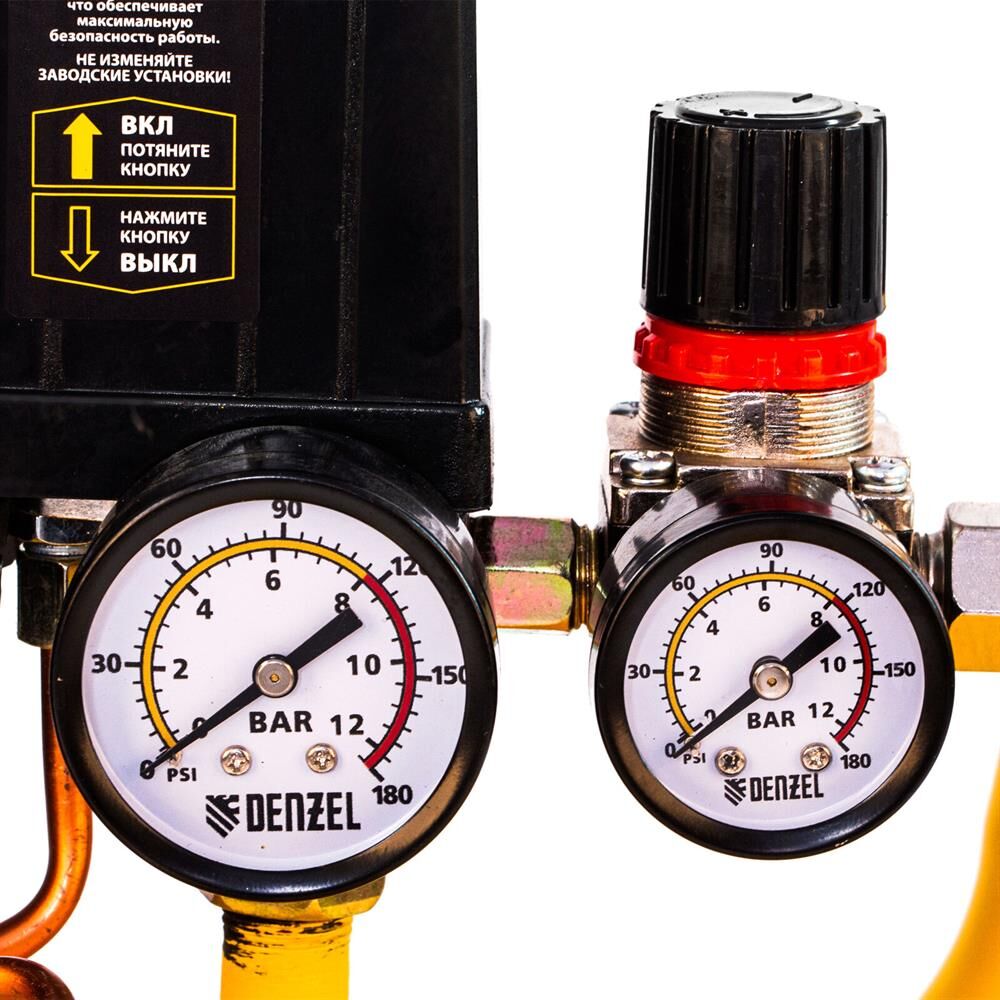 Компрессор пневматический торговой марки DENZEL предназначен для обеспечения сжатым атмосферным воздухом оборудования, аппаратуры и инструмента, применяемого в бытовых целях. Использование компрессора позволяет значительно сэкономить электроэнергию, а также повысить эффективность работы. Компрессор способен производить 230 л/мин сжатого до 8 атм воздуха, который нагнетается в ресивер общим объемом 50 литров. Особенности Напряжение питания 230 В Двигатель асинхронный однофазный Манометр для контроля давления сжатого воздуха Реле давления, осуществляющим запуск/остановку в зависимости от настроек Защитный клапан Функция автозапуска при понижении давления в ресивере ниже 6 атм Простота и удобство перемещения Преимущества Эффективная система смазки Защита от перегрева Защита от перегрузки Предохранительный клапан высокого давления Коннекторы для быстрого подключения пневмоинструмента Rapid (Евро) Резиновые опоры для снижения вибрации Металлические воздушные фильтры с бумажным картриджем Комплектность Компрессор в