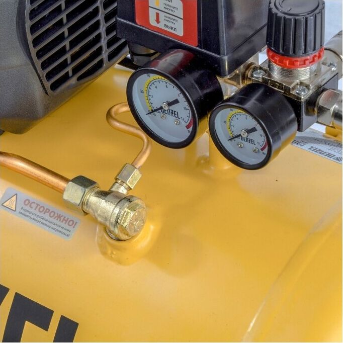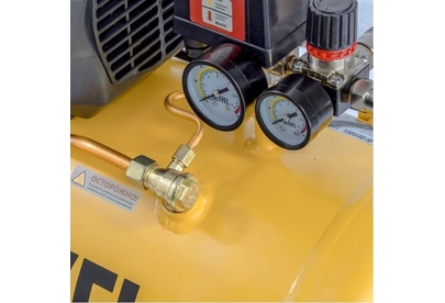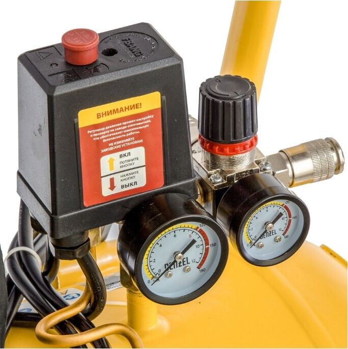 Компрессор пневматический торговой марки DENZEL предназначен для обеспечения сжатым атмосферным воздухом оборудования, аппаратуры и инструмента, применяемого в бытовых целях. Использование компрессора позволяет значительно сэкономить электроэнергию, а также повысить эффективность работы. Компрессор способен производить 280 л/мин сжатого до 8 атм воздуха, который нагнетается в ресивер общим объемом 50 литров. Особенности Напряжение питания 230 В Двигатель асинхронный однофазный Манометр для контроля давления сжатого воздуха Реле давления, осуществляющим запуск/остановку в зависимости от настроек Защитный клапан Функция автозапуска при понижении давления в ресивере ниже 6 атм Простота и удобство перемещения Преимущества Эффективная система смазки Защита от перегрева Защита от перегрузки Предохранительный клапан высокого давления Коннекторы для быстрого подключения пневмоинструмента Rapid (Евро) Резиновые опоры для снижения вибрации Металлические воздушные фильтры с бумажным картриджем Комплектность Компрессор в