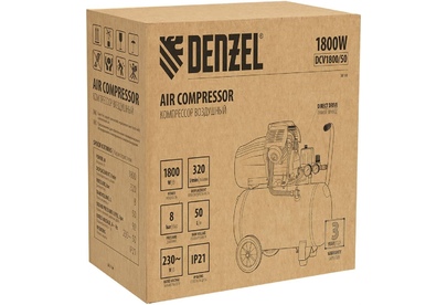 DENZEL Компрессор воздушный прям. привод DCV1800/50, 1,8 кВт, 50 литров, 320 л/мин 58168