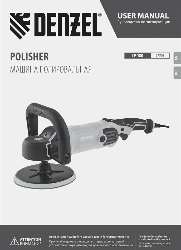 DENZEL Машина полировальная CP180, 1400 Вт, 180 мм, 03000 об/мин Denzel 27701