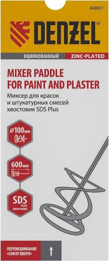 DENZEL Миксер для красок и штукатурных смесей, 120 х 600 мм, оцинкованный, хвостовик SDS Plus 848847
