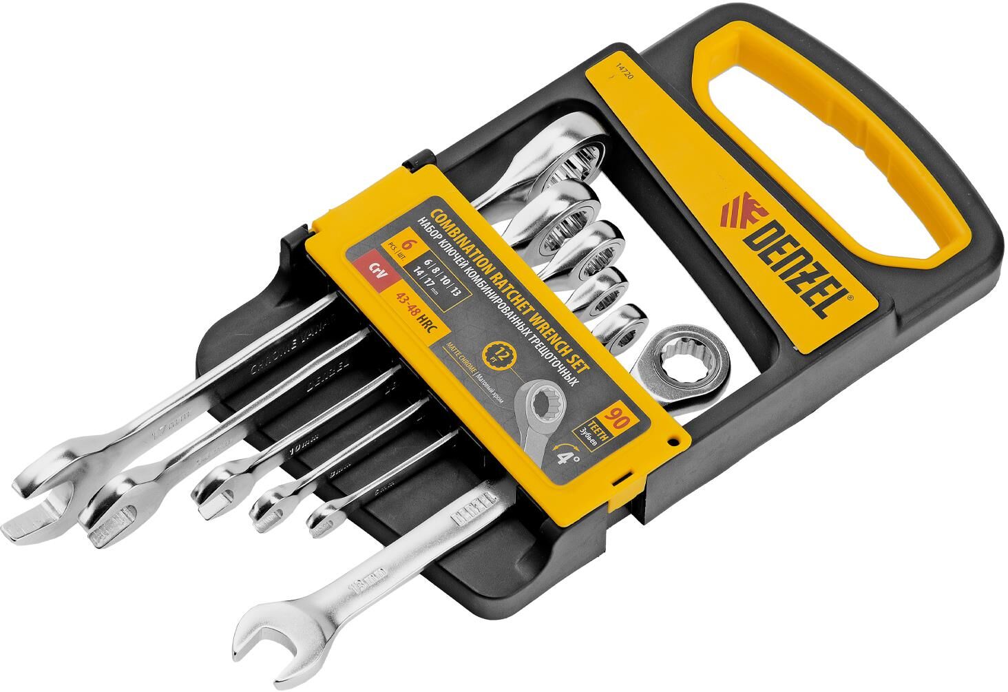 DENZEL Набор ключей комбинированных трещоточных 6-17 мм, 6 шт., CrV, матовый хром 14720