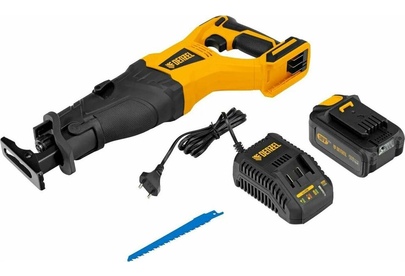Сабельная аккумуляторная пила Denzel BRC-120 28460 с бесщеточным двигателем работает от аккумулятора Li-Ion с рабочим напряжением 18 В. Предназначена для распила фанеры, досок, ДСП, ДВП, пластика, а также для обрезки веток. Максимальная глубина пропила в древесине составляет 120 мм, в стали 10 мм. Оснастка совершает до 3100 ходов в минуту, что обеспечивает эффективную работу. Универсальный аккумулятор емкостью 4 А/ч, с интеллектуальной системой распознавания нагрузки, рассчитан на длительный срок службы. Он совместим со всеми инструментами единой платформы Denzel battery system 18V серии IB.Преимущества Надежность мощный бесщеточный двигатель обеспечивает высокую производительность, не требует обслуживания и отличается долговечностью. Регулировка частоты ходов можно выбрать оптимальный режим в зависимости от твердости материала. Защита двигателя в случае перегрузки пила выключается, что позволяет предотвратить поломку.