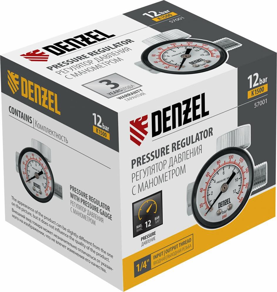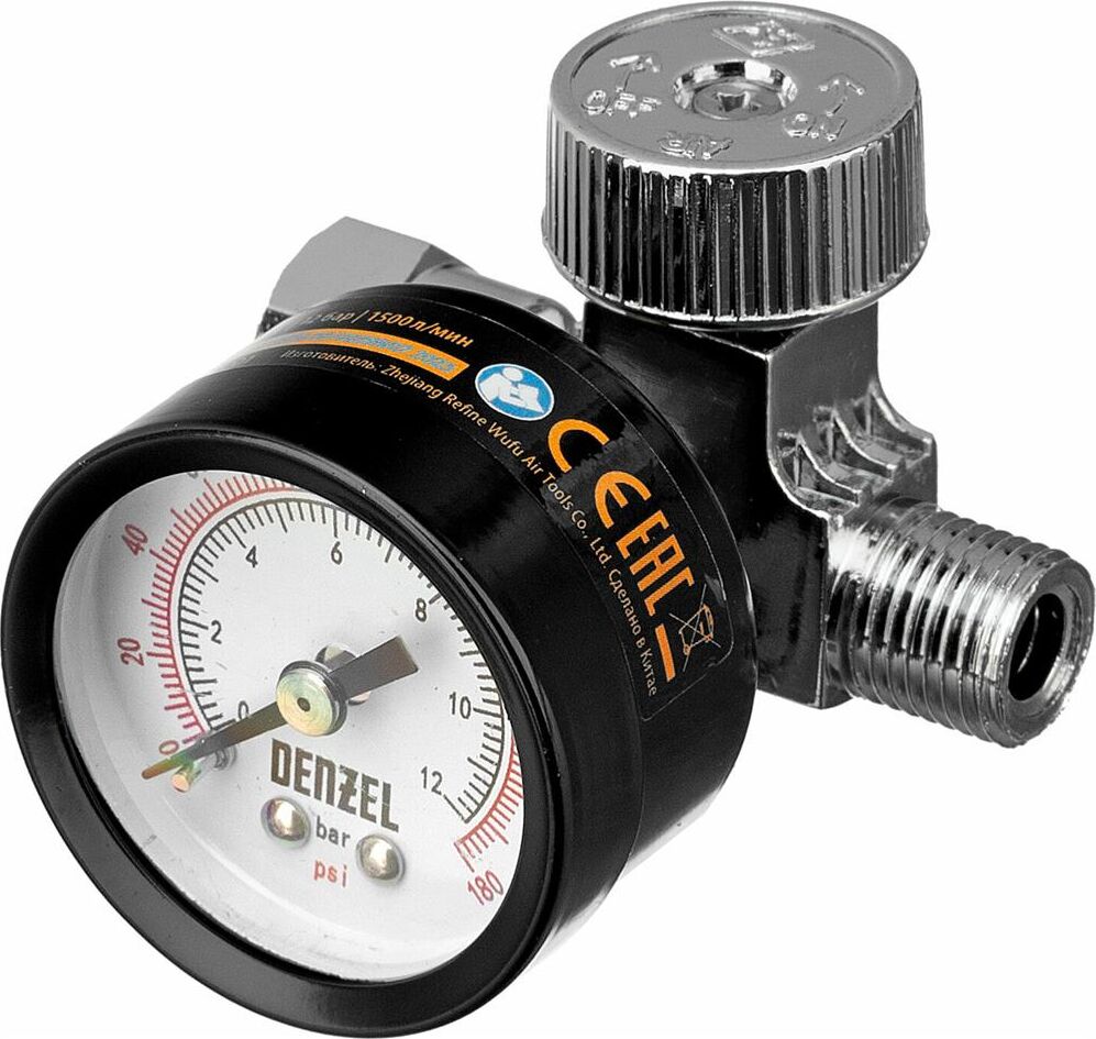 DENZEL Регулятор давления с манометром для краскораспылителя K1500, 12 бар, 1/4" Denzel 57001