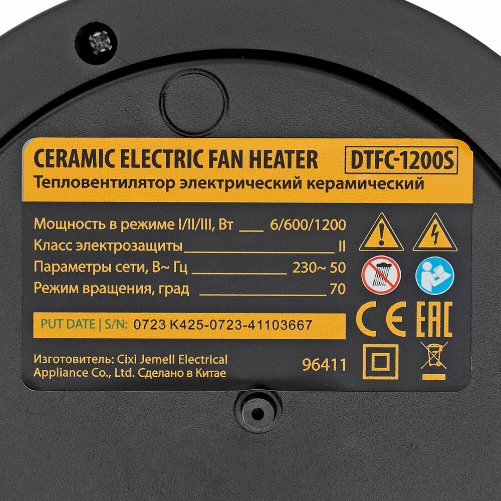 DENZEL Тепловентилятор керамический DTFC1200S, вращение, 3 реж., вент., нагрев 600/1200 Вт 96411