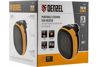 DENZEL Тепловентилятор портативный керамический DTFC700, 3 реж. вентилятор, нагрев 700 Вт 96407