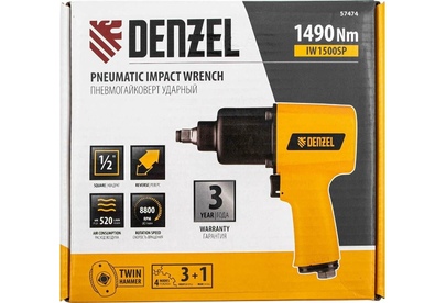 DENZEL Ударный пневмогайковерт IW1500SP, 1/2 , 8800 об/мин, 1490 Нм 57474