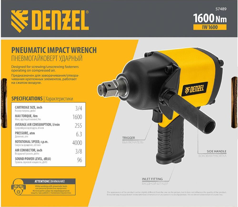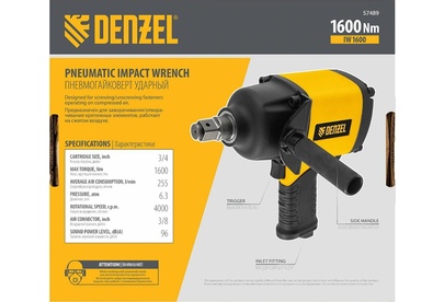 DENZEL Ударный пневмогайковерт IW1600, 3/4", 4000 об/мин, 1600 Нм Denzel 57489