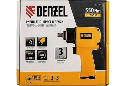 DENZEL Ударный пневмогайковерт IWS550 Compact, 1/2 , 8500 об/мин, 710 Нм 57470