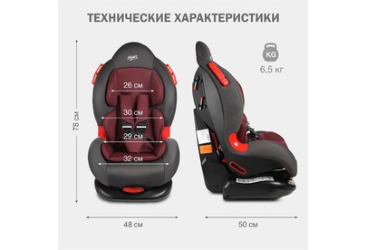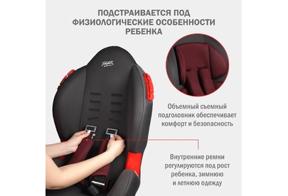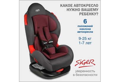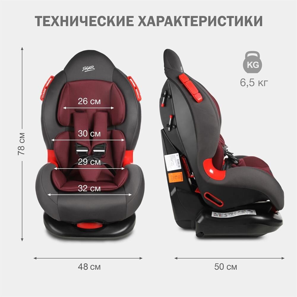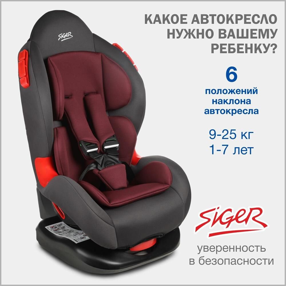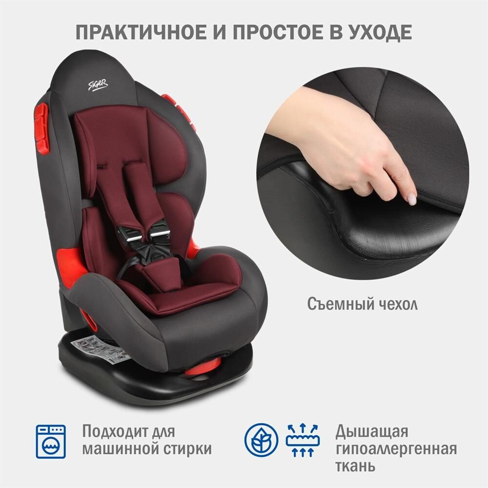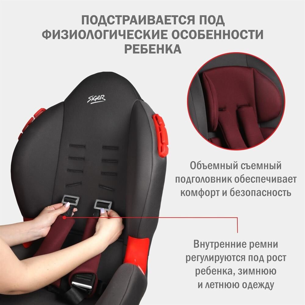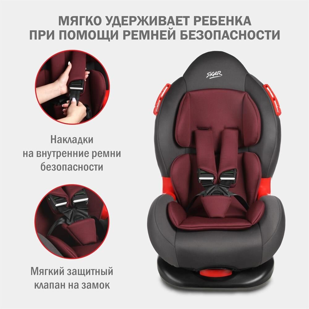 Детское автокресло SIGER УУД Кокон гр.I/II, рубиново-серый