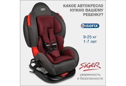 Детское автокресло SIGER УУД Кокон Isofix lux гр.I/II, вишня