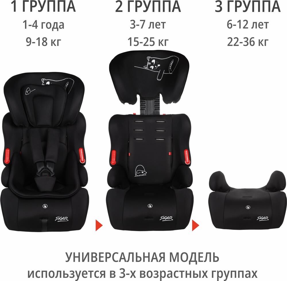 Детское автокресло SIGER УУД Космо Lux гр.I/II/III, черный кот