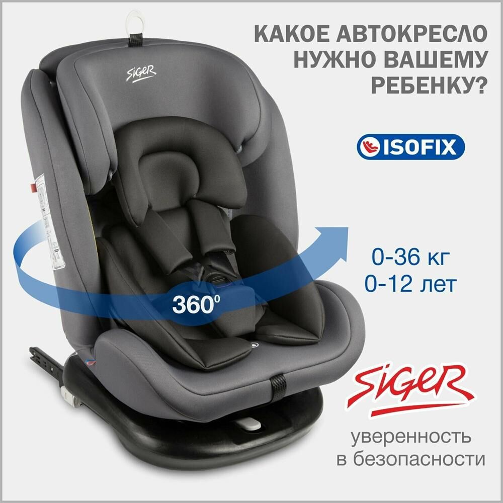 Детское автокресло SIGER УУД Престиж Isofix гр.0+/I/II/III, маренго