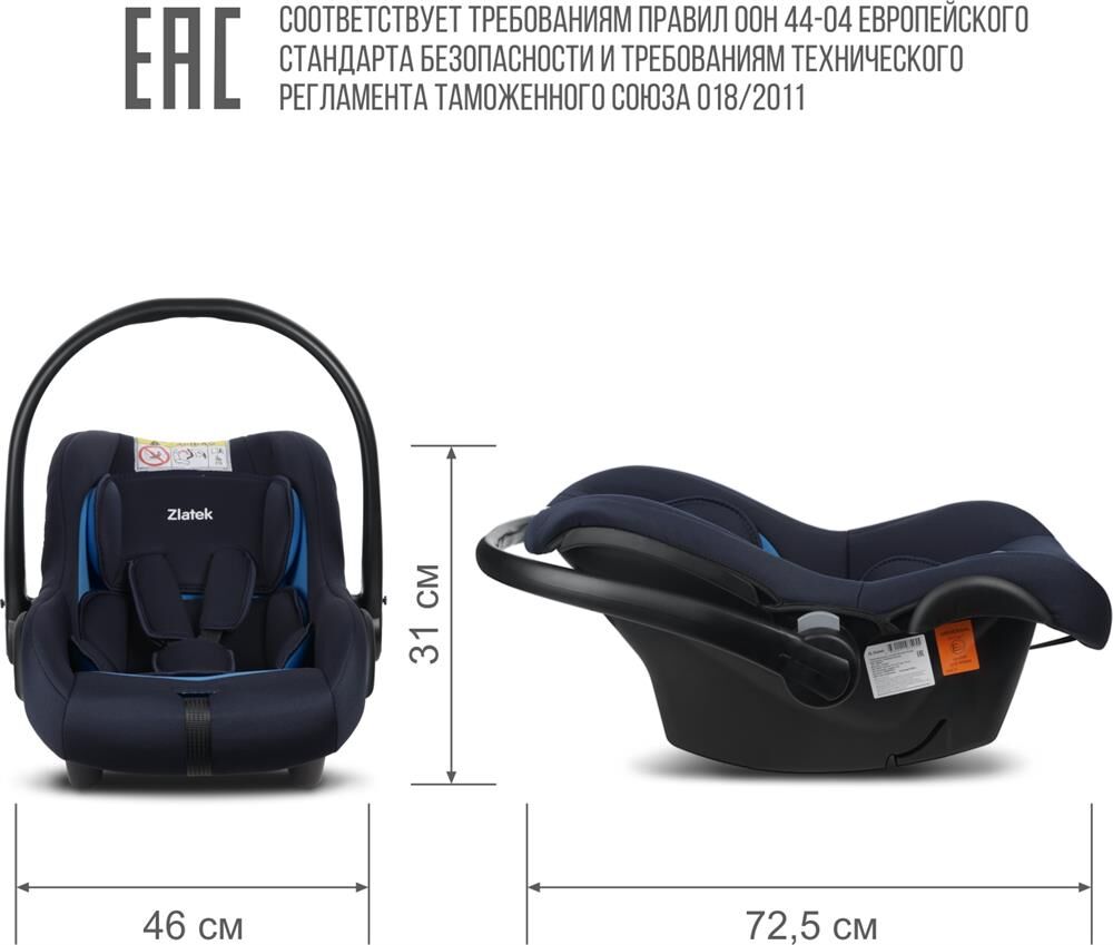 Детское автокресло ZLATEK УУД Колибри Lux гр.0+, индиго