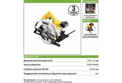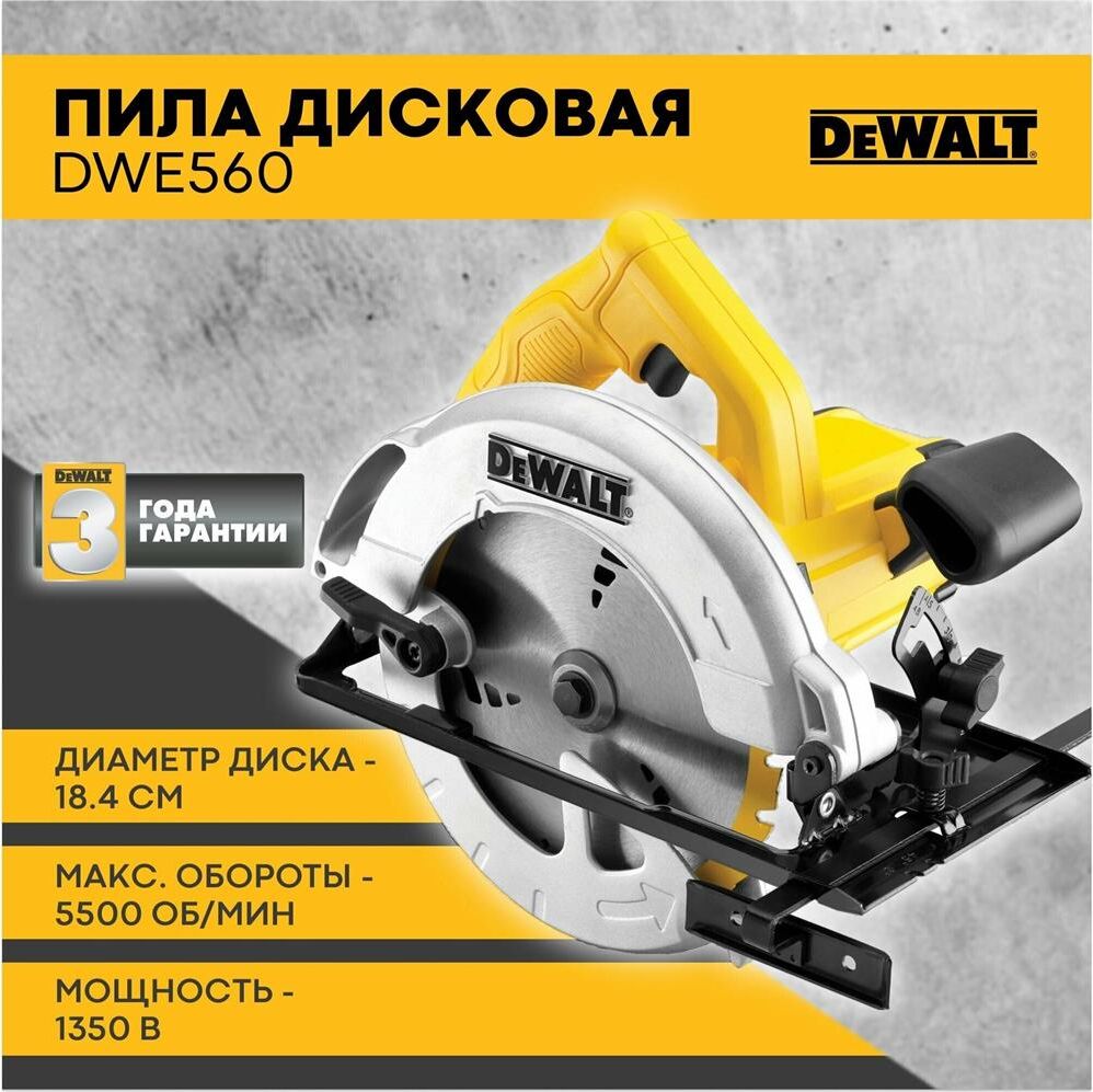 DEWALT Циркулярная пила (дисковая) DWE560-QS 1350Вт (ручная) D диска.:184мм