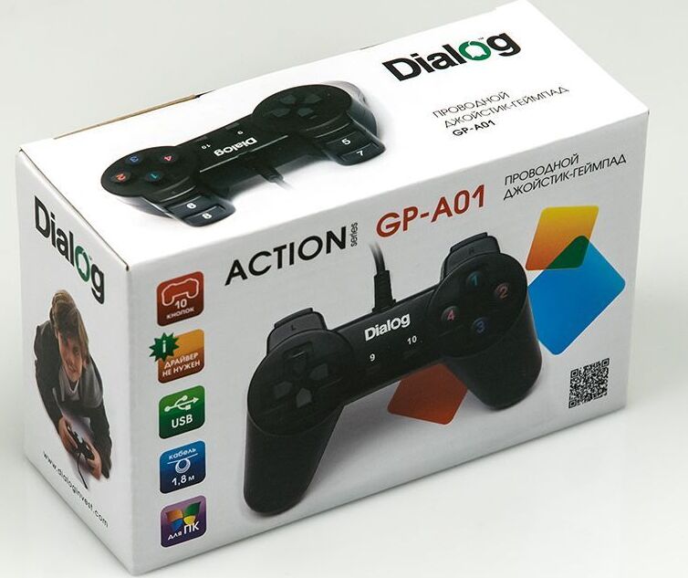 Геймпад проводной , интерфейс: USB 1.1 или 2.0, режимы работы: цифровой, органы управления: восьмипозиционный переключатель направления и кнопки управления, количество кнопок управления: 10, цвет: черный.
