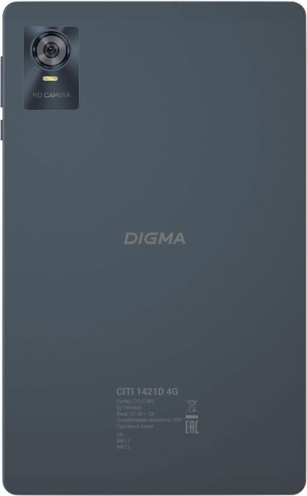 DIGMA 10.1" Планшет CITI 1421D 4G 3/64 GB T606 4G, 1280 x 800, Android 13, серый [cs1274pl]
