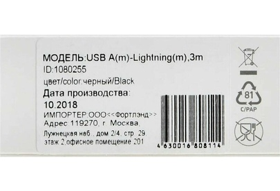 DIGMA Кабель LIGHT-3M-BRAIDED-BLK USB (m)-Lightning (m) 3м черный