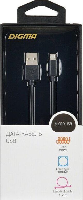 DIGMA Кабель MICROUSB-1.2M-BLK USB (m)-micro USB (m) 1.2м черный