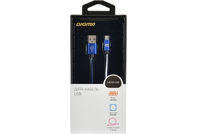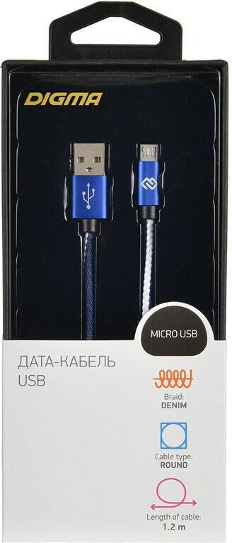 DIGMA Кабель MICROUSB-1.2M-BRAIDED-BL USB (m)-micro USB (m) 1.2м синий