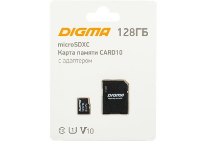 DIGMA Карта памяти microSDXC UHS-I U1 128 ГБ, 90 МБ/с, Class 10, CARD10, 1 шт., переходник SD [dgfca