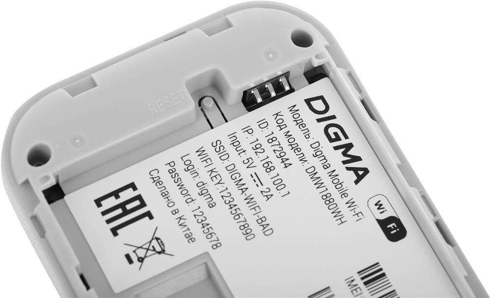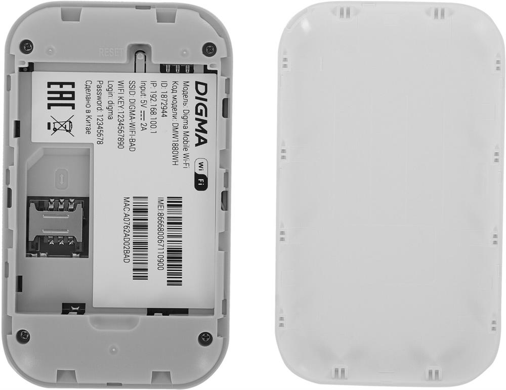 DIGMA Модем 3G/4G Mobile WiFi DMW1880 micro USB Wi-Fi Firewall +Router внешний белый