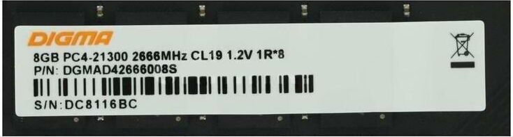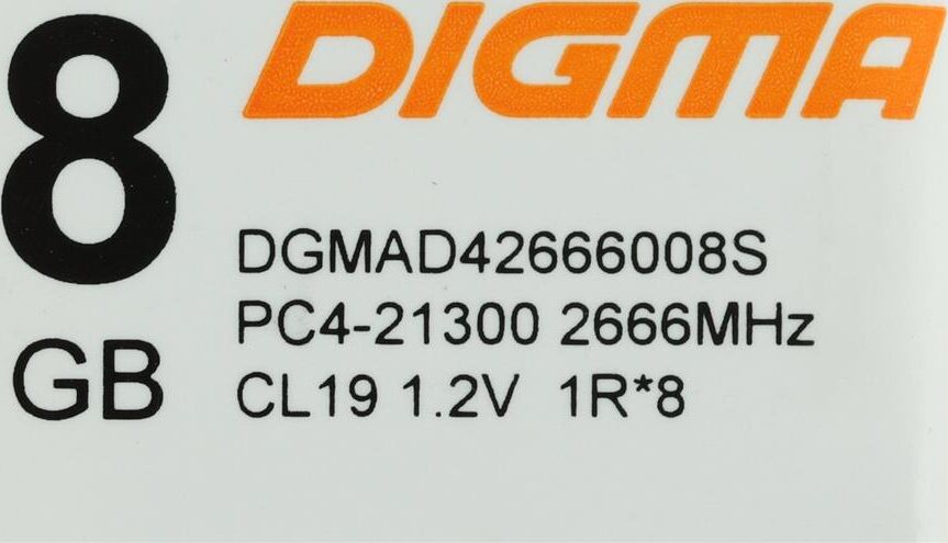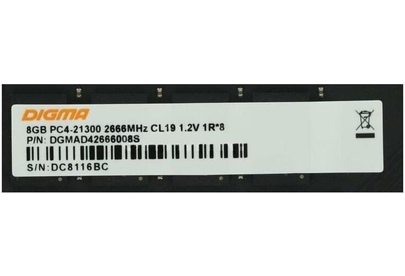 DIGMA Оперативная память DGMAD42666008S DDR4 - 1x 8ГБ 2666МГц, DIMM, Ret