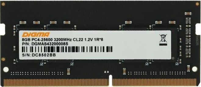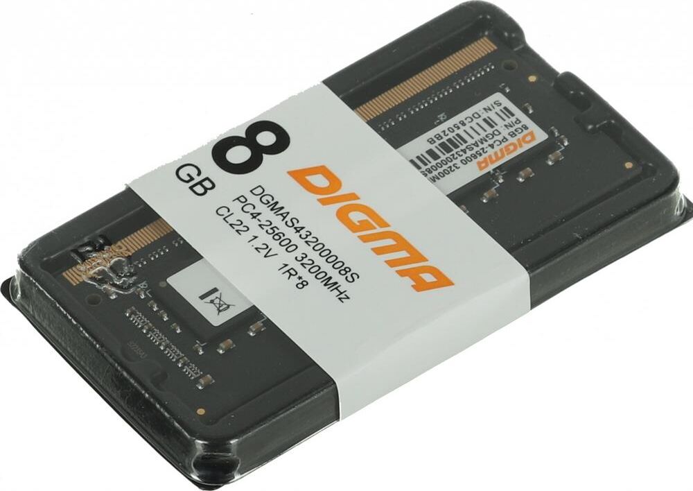 DIGMA Оперативная память DGMAS43200008S DDR4 - 1x 8ГБ 3200МГц, для ноутбуков (SO-DIMM), Ret
