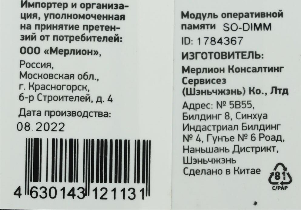 Тип памяти: DDR4. Тактовая частота: 3200. Радиатор охлаждения: нет. Тип поставки: Ret. Форм-фактор: SO-DIMM. Поддержка ECC: не поддерживается. Буферизация: unbuffered. Особенности: single rank 1R*8. Количество контактов: 260-pin. Показатель скорости: PC4-25600. Напряжение: 1.2В. Задержка: 22-22-22-52. Латентность (CAS): CL22. Габариты упаковки (ед) ДхШхВ: 0.093x0.045x0.007. Вес упаковки (ед): 0.04. RAS to CAS Delay (tRCD): 22. Row Precharge Delay (tRP): 22. Объем одного модуля: 8. Пропускная способность: 25600. Суммарный объем памяти всего комплекта: 8. Обозначение памяти: SO-DIMM. Гарантия: 120 мес.. Тайминги: 22-22-22-52. Частота: 3200 МГц. Латентность: CL22. Тип поставки: Ret. Форм-фактор: SO-DIMM, 260-pin. Объем: 8 ГБ