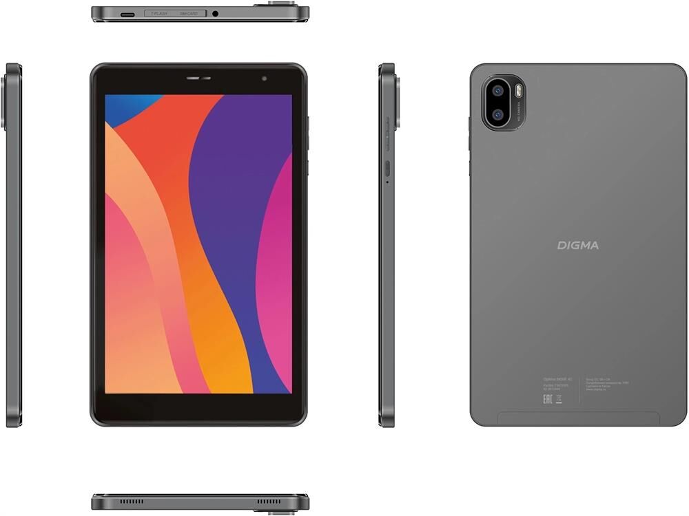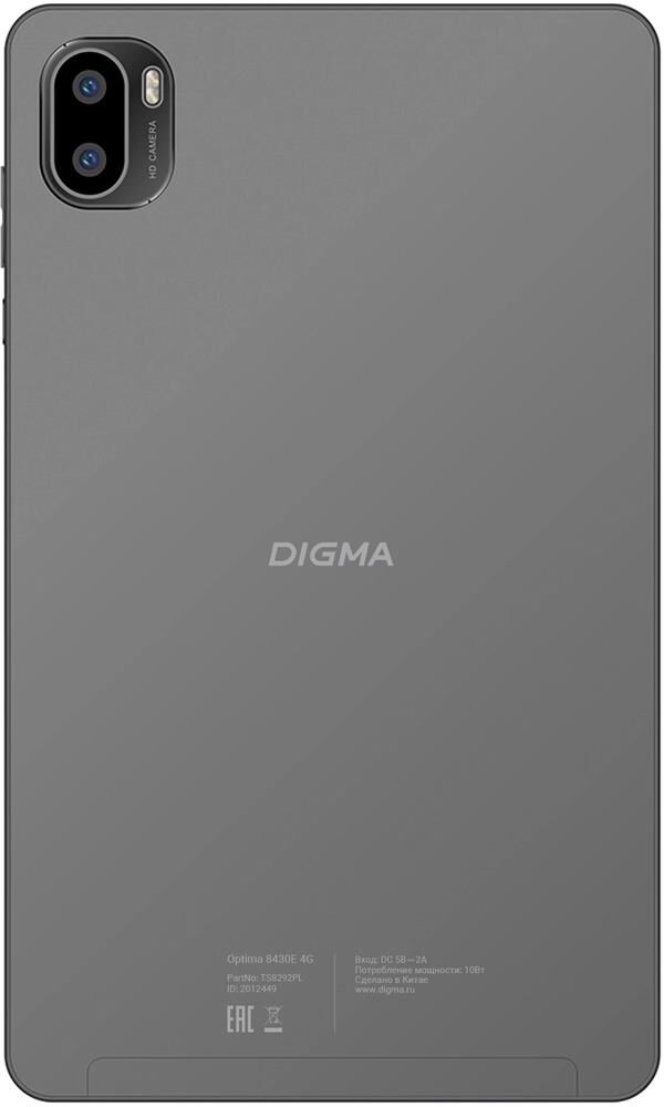 DIGMA Планшет Optima 8430E 4G T606 (1.6) RAM4Gb ROM64Gb 8" IPS 1280x800 4G Android 14 серый 5Mpix 2M