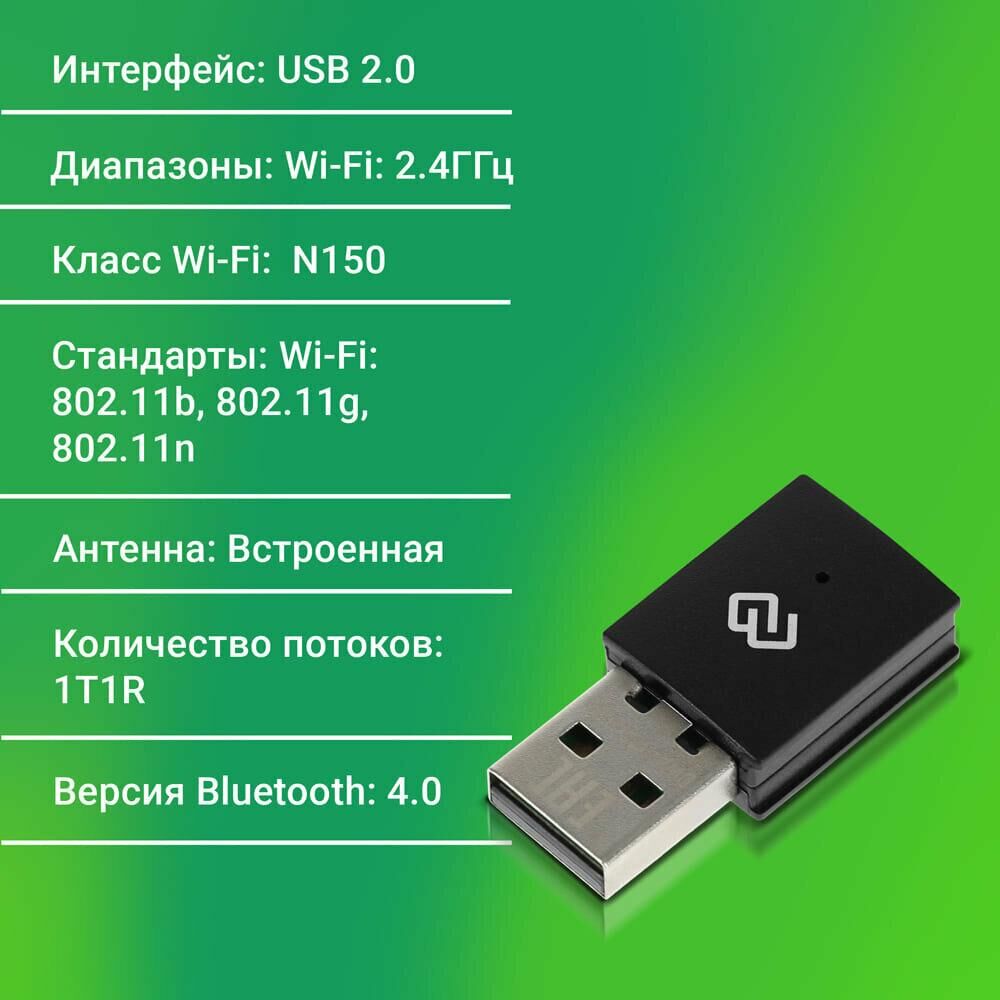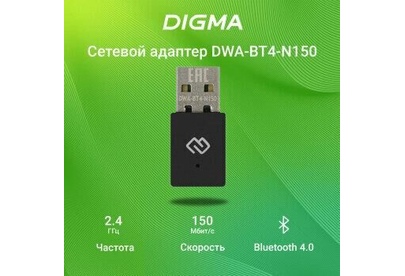 DIGMA Сетевой адаптер WiFi + Bluetooth DWA-BT4-N150 N150 USB 2.0 (ант.внутр.) 1ант. (упак.:1шт)